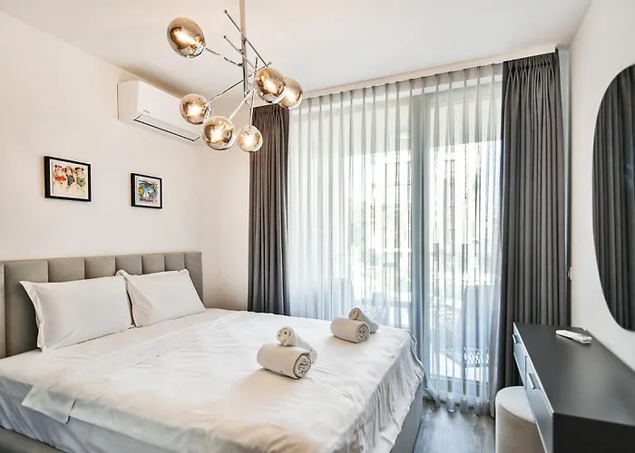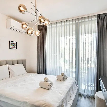 Super Luxury Flat For 2 In Deluxe Azurアパ-トメントは聖コンスタンティン エレナ修道院からわずか250メ-トルに位置し,季節限定の屋外プ-ル と庭園を提供しています. このアパ-トはヴァルナ自由大学から3.4キロメ-トル離れた所にあります.